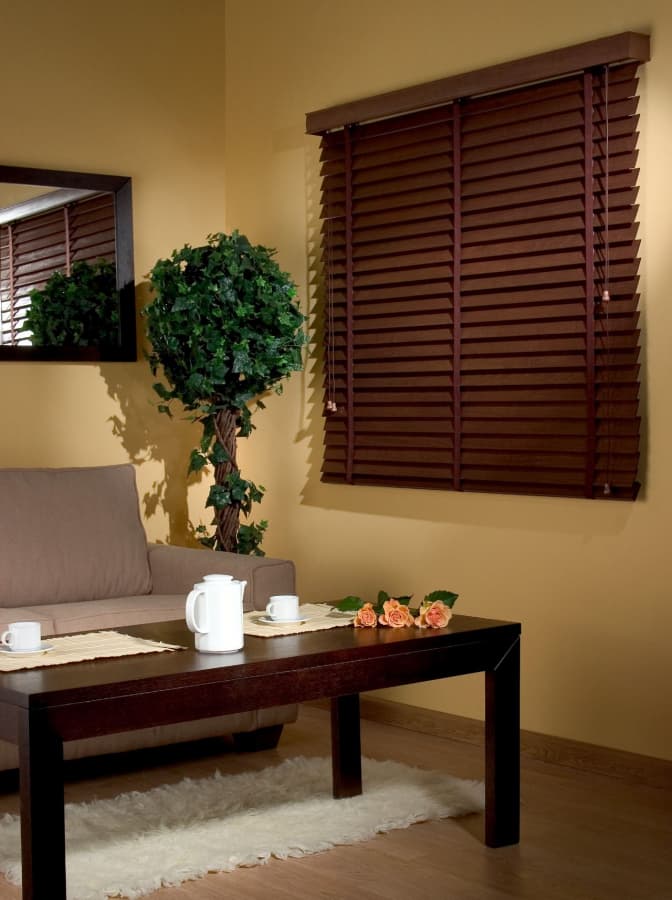 - Экономия энергии. Широкие деревянные горизонтальные жалюзи помогают снизить нагрев помещения летом и проникновение холода зимой через оконное стекло, что может уменьшить затраты на кондиционирование и отопление.